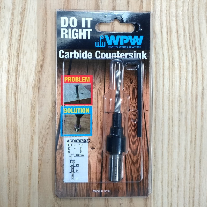 Конфірматні свердла WPW (Ізраїль) з циліндричним хвостовиком d=10 мм та зенківкою з DHN обробкою поверхні призначені для свердління за допомогою дриля з кулачковим патроном отвору під одноелементні стяжки – конфірмати, які використовуються для з'єднання деталей меблів.